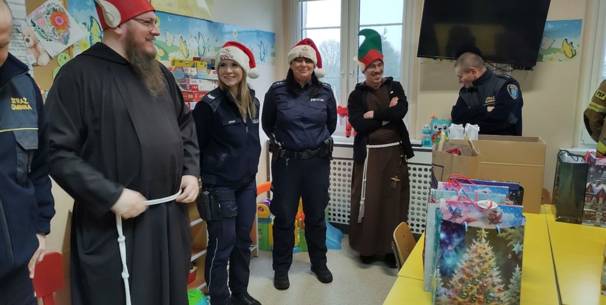 Na dzień przed świętem Mikołajek funkcjonariusze policji, straży pożarnej oraz straży gminnej odwiedzili dzieci przebywające na leczeniu w 107 szpitalu w Wałczu. Wspólna inicjatywa służb mundurowych i braci kapucynów od lat przynosi najmłodszym pacjentom wiele radości, odciągając ich choć na chwilę od szpitalnych trosk. Podczas spotkania br. Marek Zimny OFMCap , proboszcz parafii św. Antoniego w Wałczu opowiedział dzieciom krótką i pełną ciepła historie o świętym Mikołaju.